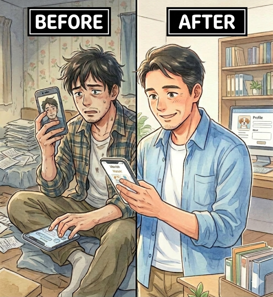 - 中身がないプロフ: 趣味も人柄も、生活の充実感も伝わらない。